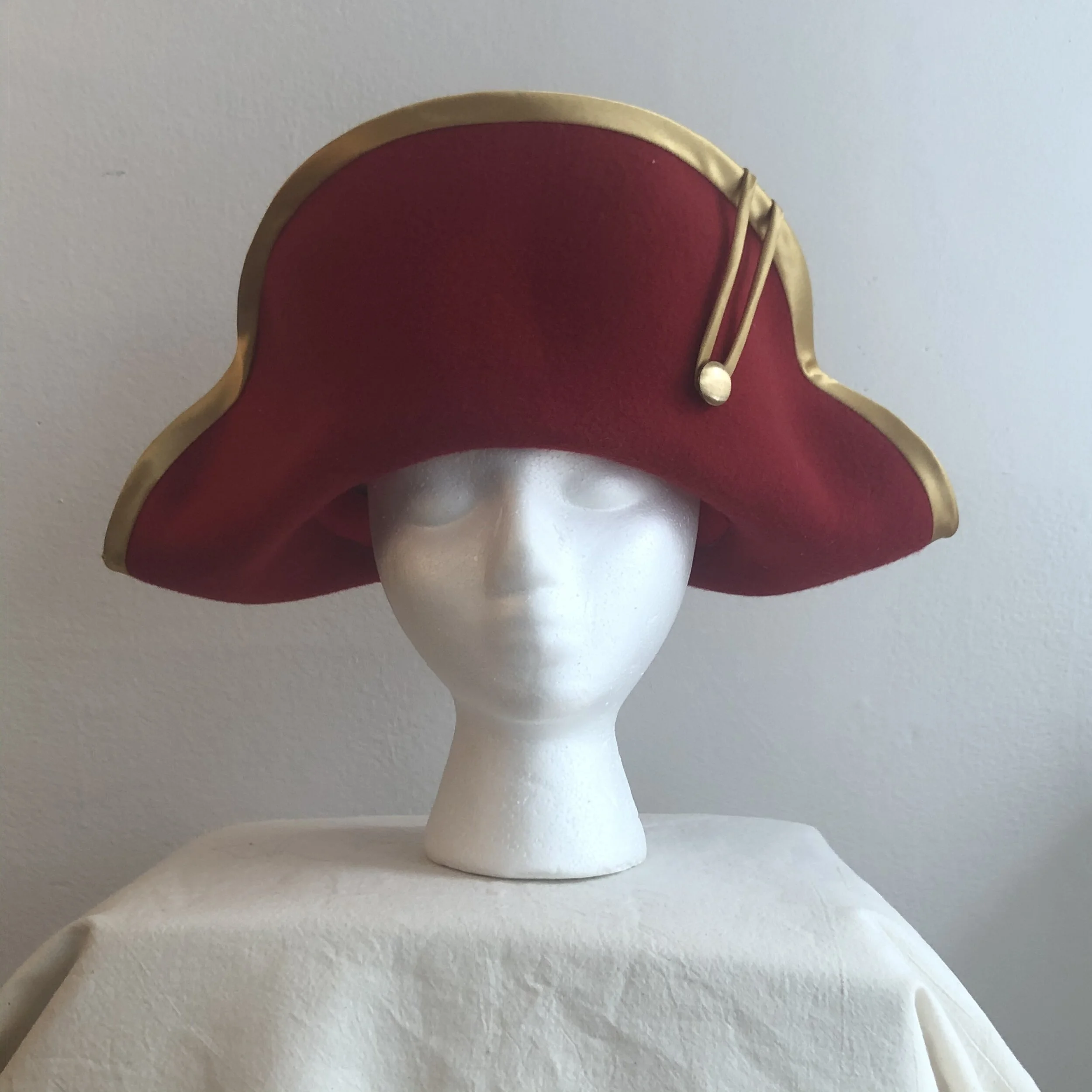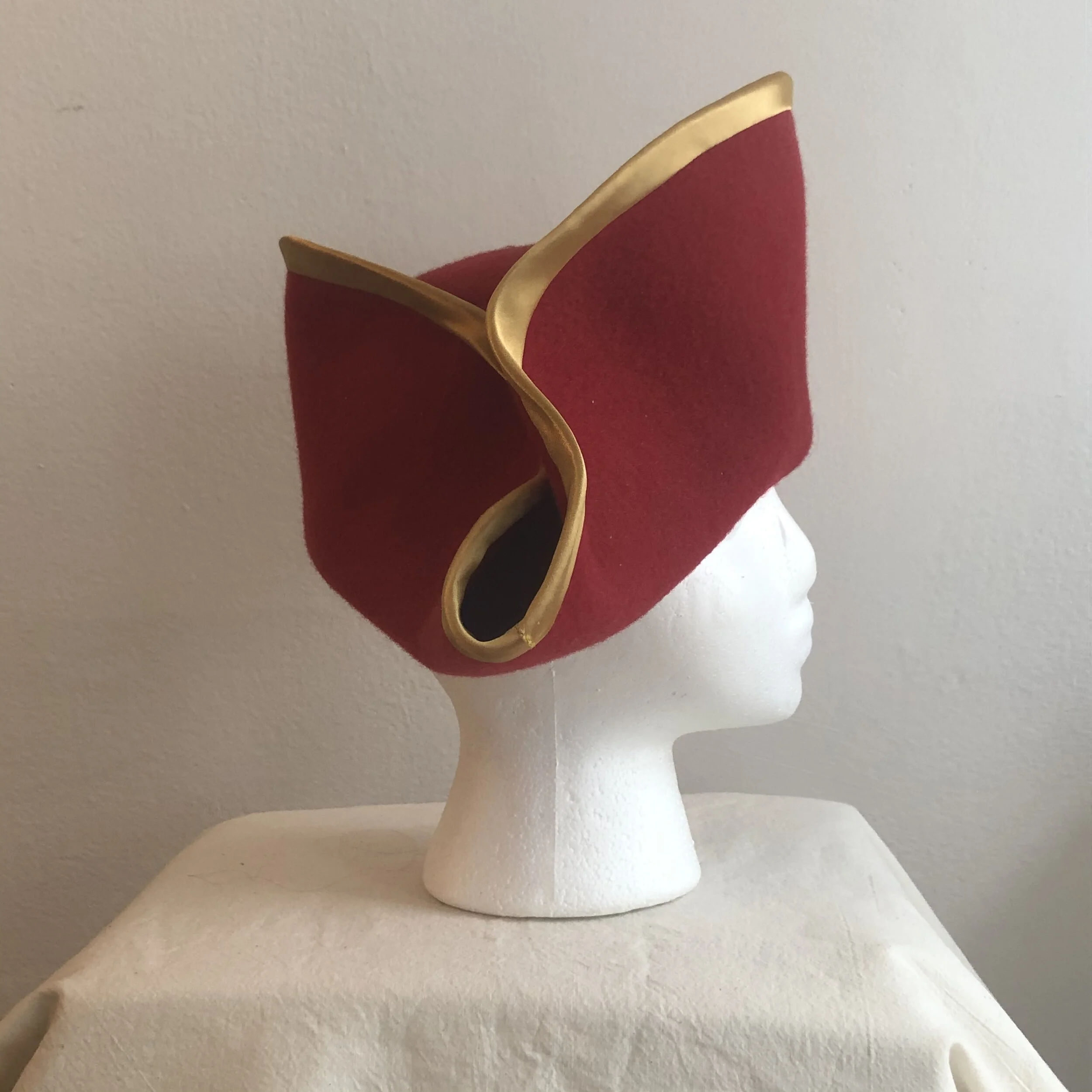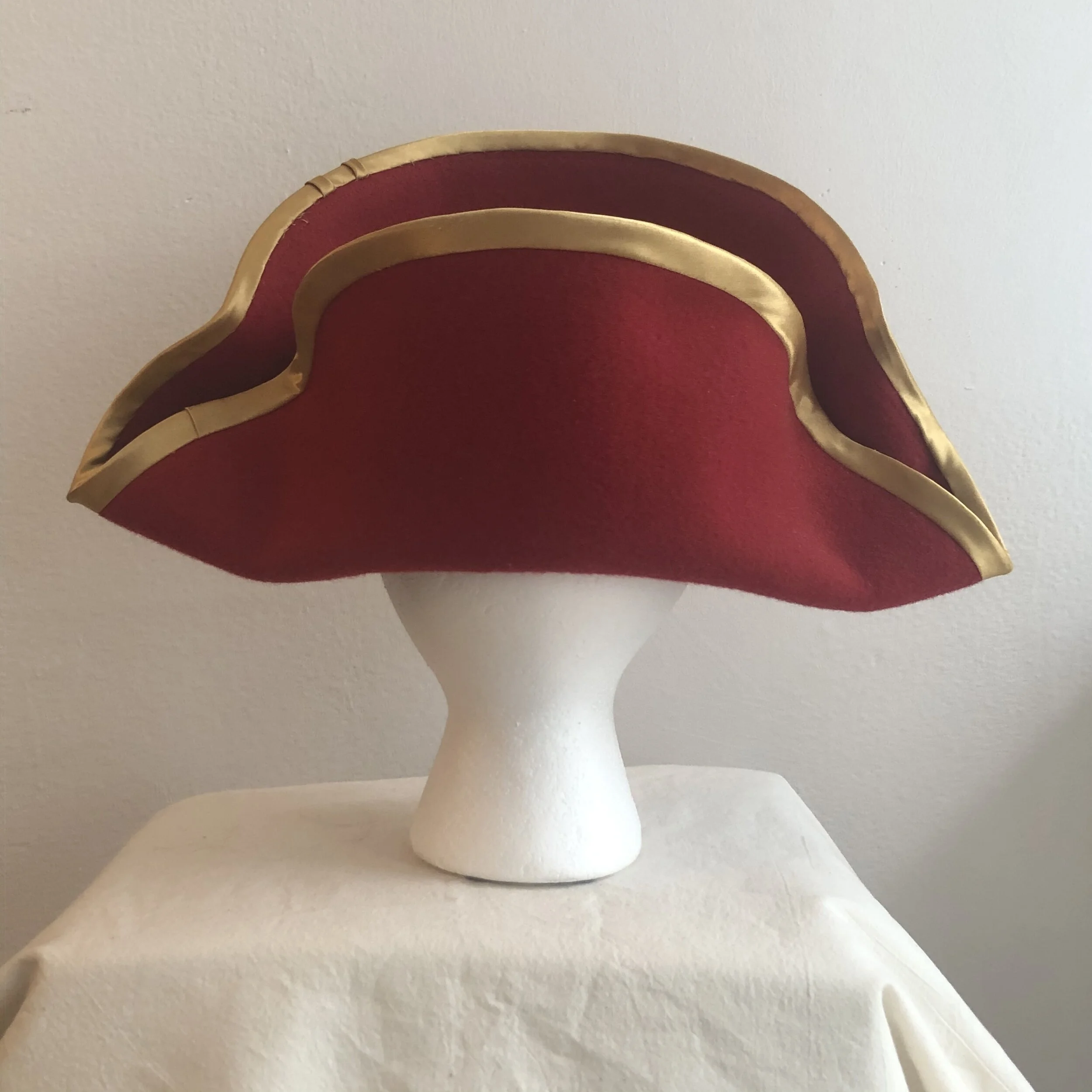 Blocked wool felt trimmed with satin bias tape. Fully lined.